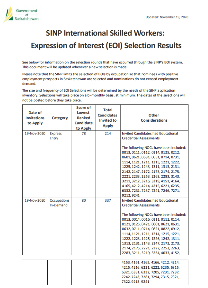 加拿大当地时间2020年11月19日,萨省技术移民无雇主类别又进行了新一轮的邀请,来看看此次邀请的最新内容吧!