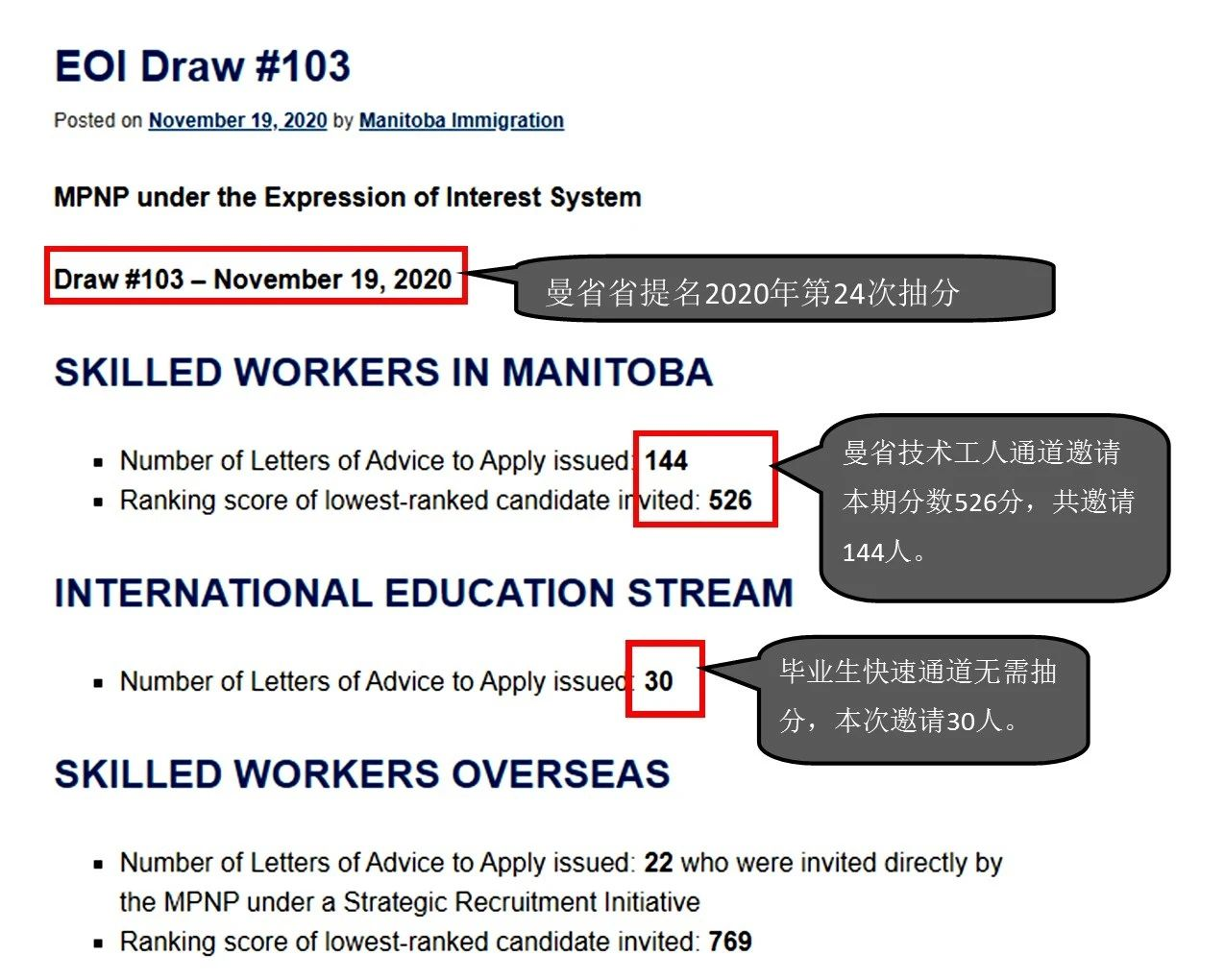 现在再次敲黑板划重点:曼省技术工人类别,只要有6个月的工作,就有500加分,还未计算其他加分项。因此,本次邀请分数526,仍然属于比较好达到的分数,这。对广大申请人来说未尝不是一件好事。