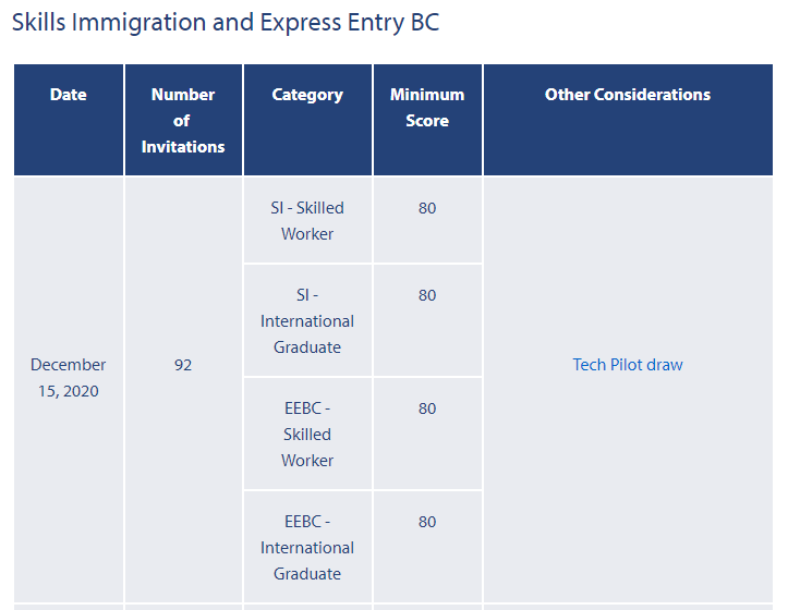 加拿大当地时间12月15日,BC PNP Tech Pilot发布最新一轮抽分结果。