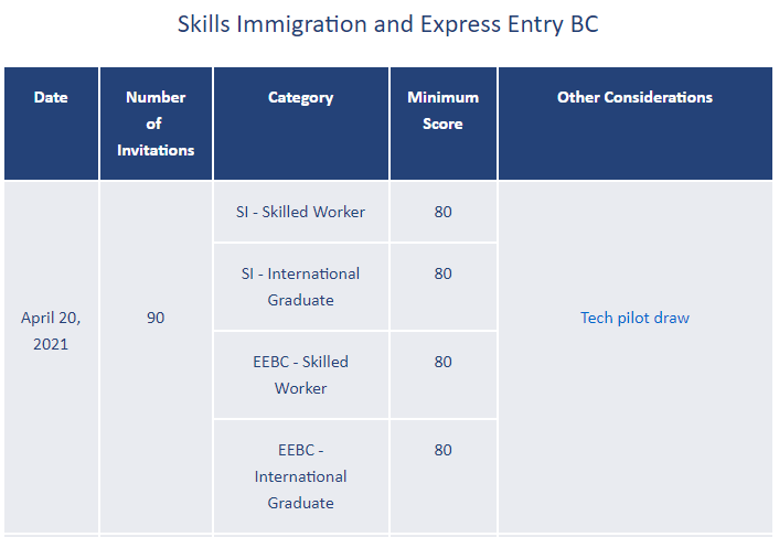 加拿大当地时间2021年4月20日,BC PNP发出了新一轮邀请。