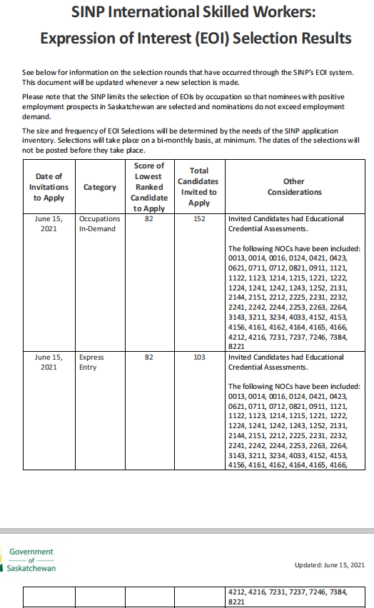 【SK】萨省技术移民无雇主类别6月15日最新抽分结果公布!