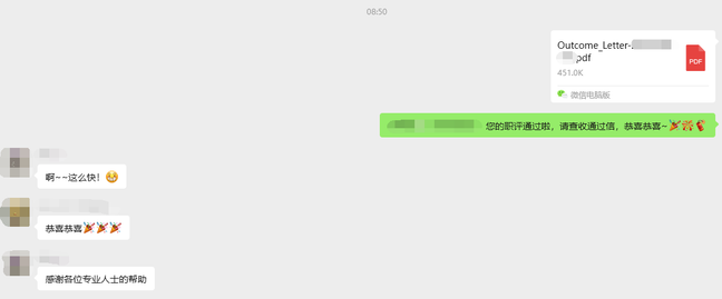 该客户于2025年9月11日递交职评申请,2025年9月30日通过。申请过程中,文案根据客户工作背景耐心指导客户提供材料,撰写详细的推荐信递交申请,最终帮助客户顺利通过职评。