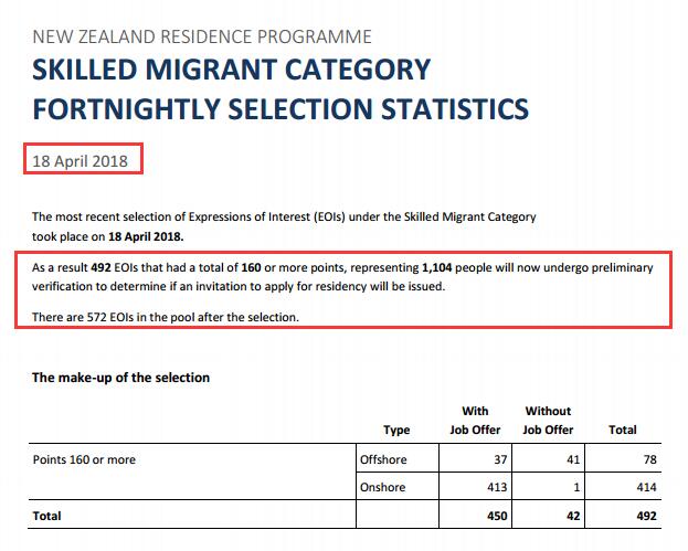 新西兰技术移民2018年4月18日EOI筛选结果:本轮共有492个申请人获邀。