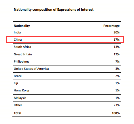 5. 受邀者中持有中国国籍的占17%,比上次增加了5个百分点,在EOI递交国家中排名第二,可以看出中国仍然是新西兰技术移民申请的主要来源国!