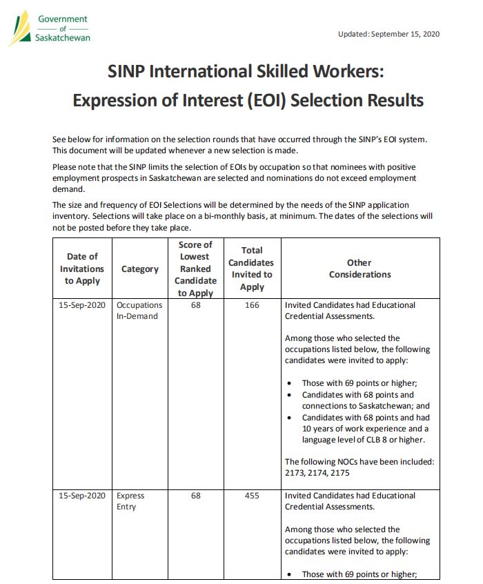 加拿大当地时间2020年9月15日,萨省技术移民无雇主类别又进行了新一轮的邀请,来看看此次邀请的最新内容吧!