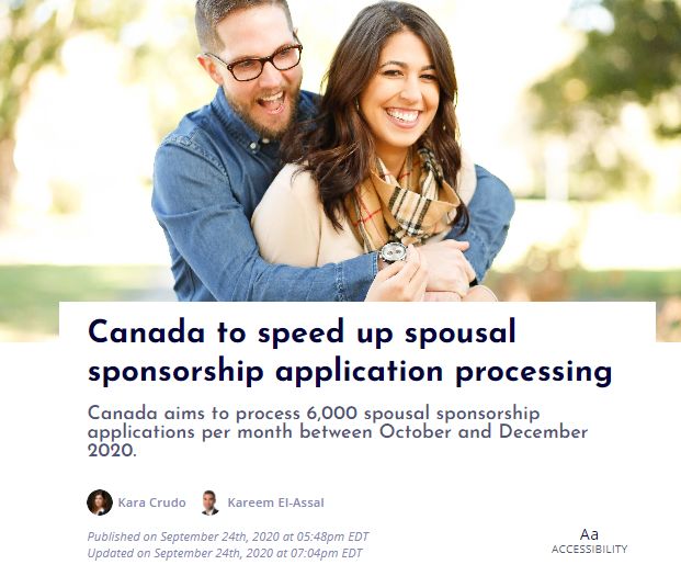 加拿大当地时间2020年9月24日,加拿大移民部长Mendicino宣布,鉴于目前移民审批的速度较慢,为了帮助更多的家庭、配偶早日在加拿大团聚,移民部(IRCC)从即日加速配偶申请的审核速度。