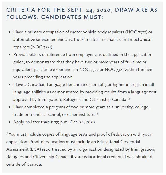 本次省提名邀请主要是针对职位为NOC7322汽车车车身维修工或NOC7321汽车维修技师,卡车和公共汽车力学和机械维修工的候选人。
