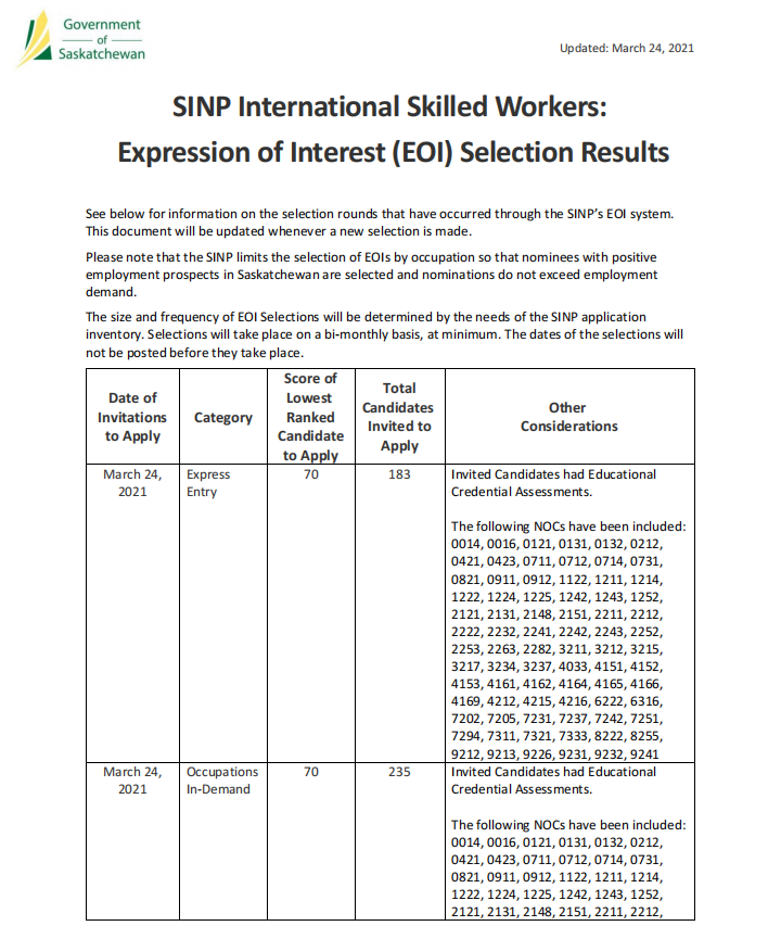 加拿大当地时间202年3月24日,萨省技术移民无雇主类别又进行了新一轮的邀请,来看看此次邀请的最新内容吧!