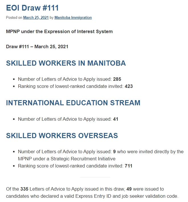 目前,曼省依旧是加拿大移民政策最宽松的省份之一,相比安省、BC省等省份,配额充足,政策上也更为宽松,IES类别的毕业生无需工作经验,毕业即可提交省提名;而对于已经有海外工作经验又在加拿大有工作经历的人而言,联邦EE通道下FSW项目+省提名的方式更为移民申请提速不少;至于EOI打分更无需担心,以曼省为例,一个工作经验就占了500分,所以申请人超分数线几百分是很轻松且常见的事,即使是外省毕业生在扣除外省留学经历和工作经历200分的情况下,仍可被邀请。