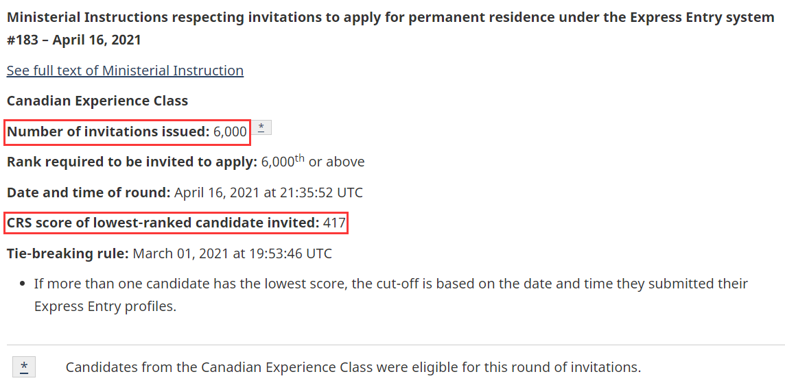 加拿大当地时间4月16日,联邦EE发布了第183轮邀请,本轮邀请仅针对指定类别(CEC类申请人)。