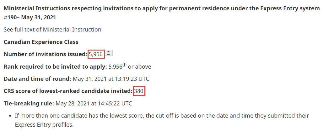 加拿大当地时间5月31日,时隔五天,联邦EE发布了第190轮邀请,本轮邀请仅针对经验类移民类别(CEC类申请人)。