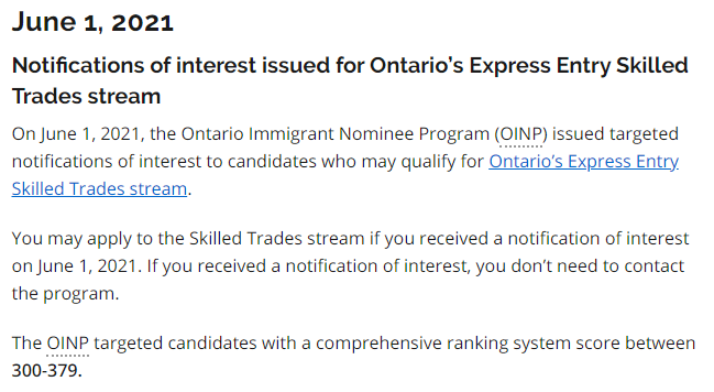 加拿大当地时间2021年6月1日,安省政府OINP发出技工类别 Skilled Trades邀请。