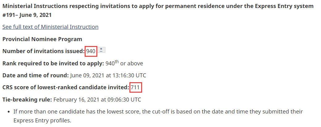 获得EE省提名邀请的候选人,在快速通道CRS的基础分数上会自动获得额外600分,意味着扣除省提名加分后,申请人基础分最少要达到111分!