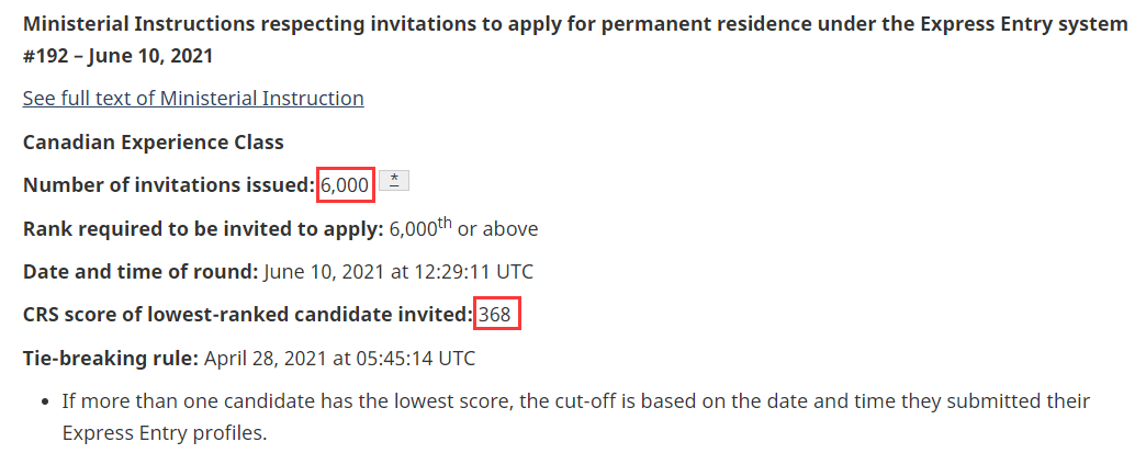 加拿大当地时间6月10日,联邦EE发布了第192轮邀请,本轮邀请仅针对经验类移民类别(CEC类申请人)。