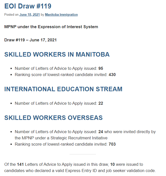 加拿大当地时间6月18日,曼省省提名第119轮邀请结果公布。