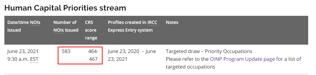 加拿大当地时间2021年6月23日,时隔两个多月,安省省政府(OINP)优才计划(Human Capital Priorities stream)向快速通道人才库中符合条件的候选人发放了583份省提名邀请。