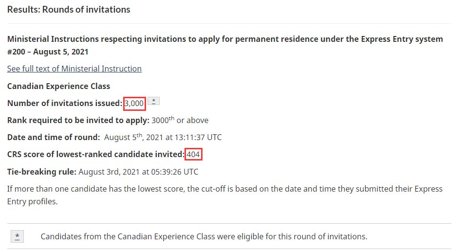 加拿大当地时间8月5日,联邦EE发布了第200轮邀请,本轮邀请仅针对经验类移民类别(CEC类申请人)。