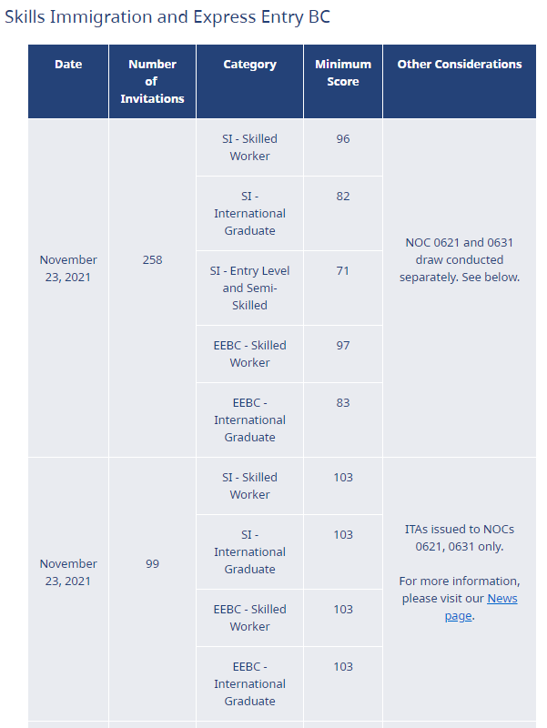 加拿大当地时间2021年11月23日,BC PNP发出了新一轮邀请,这次邀请分数较上轮小幅提高。