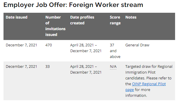 本轮安省雇主担保海外工人类别最低分37分获邀,邀请人数470人。该次邀请是General Draw, 没有对行业做出限制,所有行业都可以。该类别同时对区域试点项目发出33个邀请, 没设最低分;