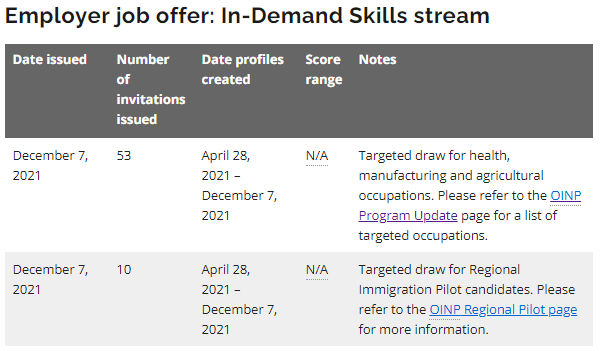 本轮安省雇主担保紧缺职业类别邀请了53人;该类别同时对区域试点项目发出10个邀请;