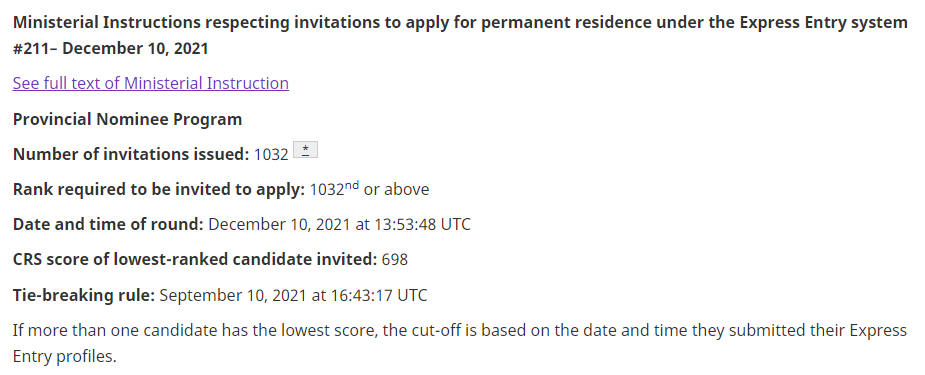 加拿大当地时间12月10日,联邦EE发布了第211轮抽签。