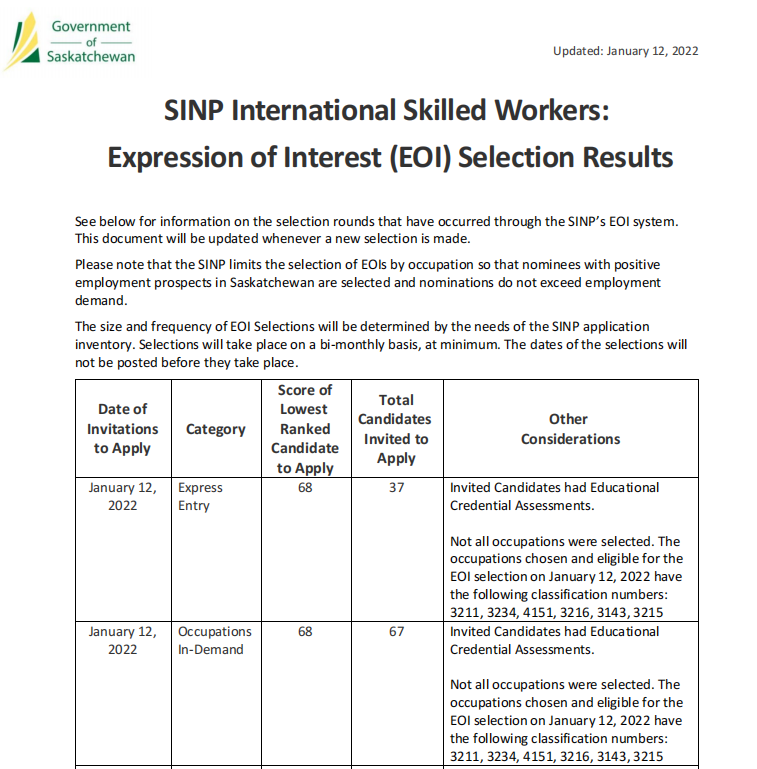加拿大当地时间2022年1月12日,萨省技术移民无雇主类别又进行了2022年第一轮抽分。
