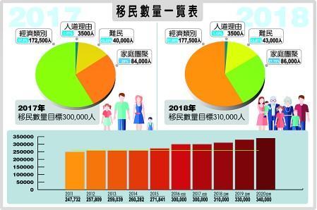 10月1日,联邦移民部公布了未来三年的加拿大移民计划﹐其中PGP移民配额2018年与今年持平,为2万名,1万名供“随机抽签”,1万名额是用作清理积压个案﹔2019年为20,500名﹔2020年为21,000名。
