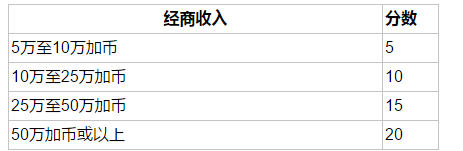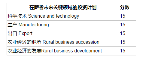 到萨省考察与其相关行业的生意,至少五天,可得15分。