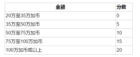 1. 家庭净资产:50万加币(包括房产、存款、理财和公司资产等)
