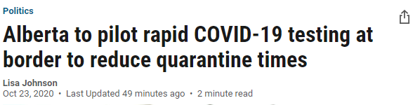 该消息一出,阿省就表现出极大的欢迎,并且该省政府已经宣布,从11月2日开始,其境内的卡尔加里国际机场和Coutts 边境检查站将成为加拿大首批为旅客提供快速检测试的地方。