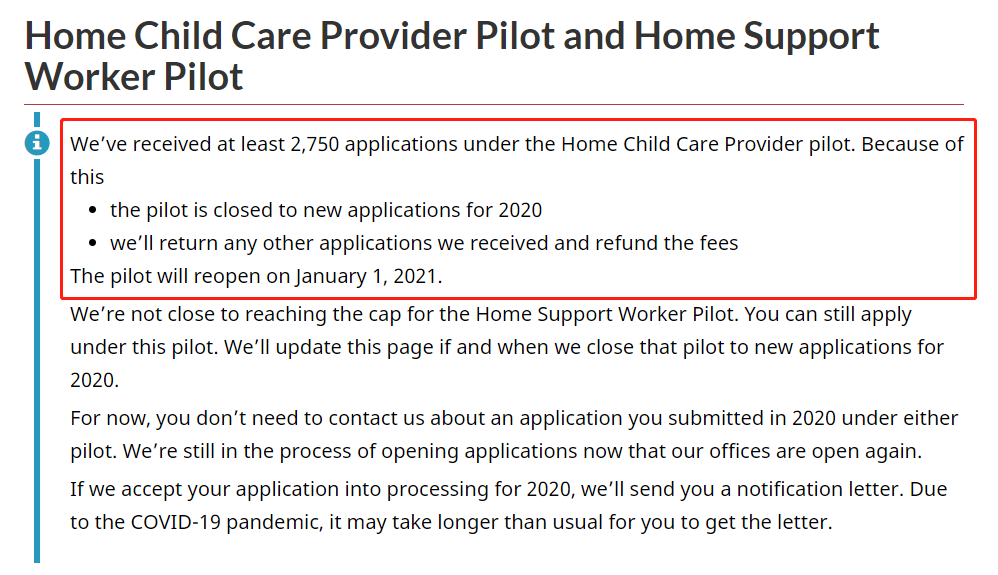 自2020年11月2日起,移民部停止接收儿童护工类别的移民申请,所有在此日期之后接收到的申请将被退件和退回申请费。