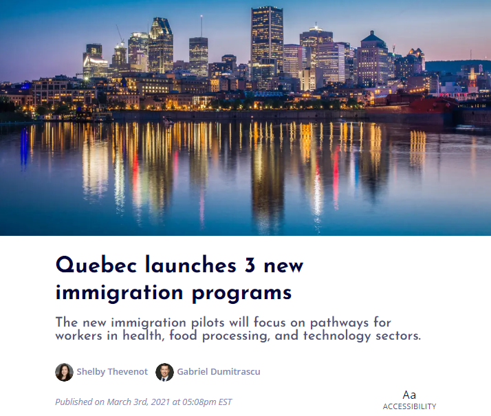 魁北克国际关系和法语国家以及移民、法语化和融合部部长Nadine Girault在《魁北克省官方公报》上宣布制定三个移民试点计划,新移民试点计划重点关注卫生、食品加工和IT技术领域的人才的移民途径,试点项目将于今年三月开始实施。