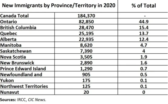 安省2020年总共接收了82850名新移民,占加拿大新移民总人数的44.9%,这意味着,在所有省份中,该省份仍是新移民心中移民目的地的首选。