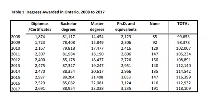 安省1300多万人口,每年大学毕业生就有10几万,其中国际生比例更是逐年上涨,目前已超过15%,其中以中国和印度学生为主(目前约为75%),这些学生大部分有移民需求。每年安省大专院校(Post Secondary)的中印两国毕业生约为12000-13000人。