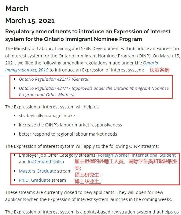 另外,安省省提名将正式上线EOI系统,在全新的EOI机制下,申请人将先向OINP注册入池,然后提供个人信息以及其他人力资本信息(如雇佣关系)进行评分,安省将根据池中候选人的情况及分数择优录取并发出省提名邀请(ITA)。