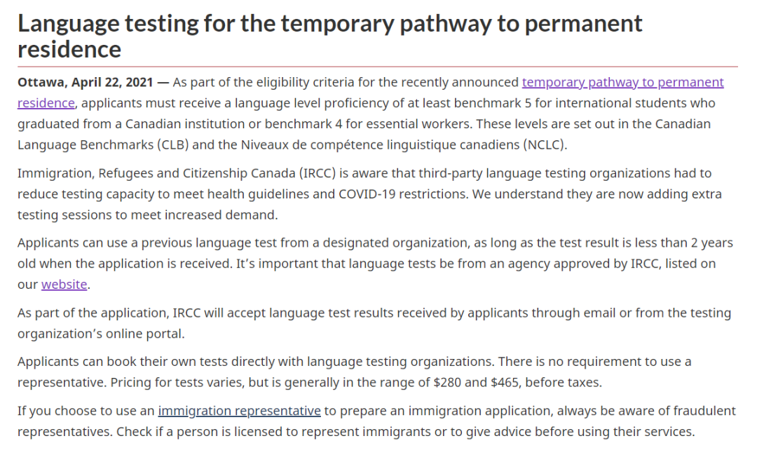 加拿大新增PR语言测试临时通道!