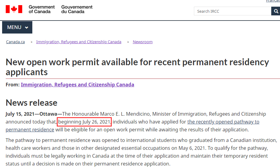 新的工签申请需要在网上提交。有关如何申请的更多详细信息将于2021年7月26日在IRCC网站公布。