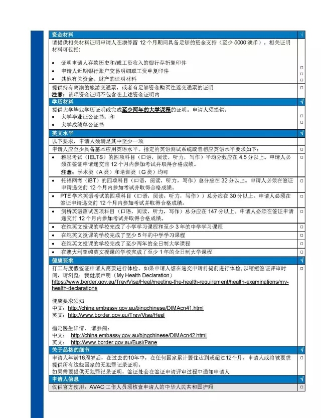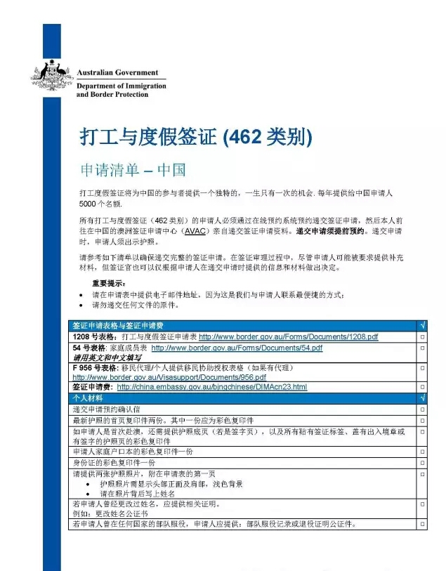 官方消息披露申请澳大利亚打工与度假签证将更简单了。申请人不用提供户口或者身份证的公证书(提供彩色复印件即可)。打工与度假签证申请材料清单见下图: