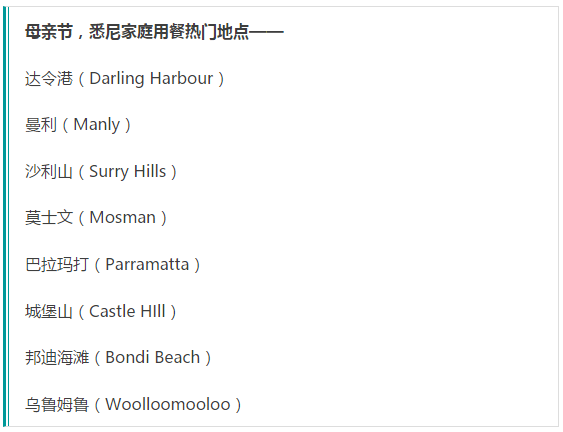 2016年餐厅预订网站Dimmi lunch(庆祝母亲节的首选餐厅)的数据显示,近47%的用餐者选择在中午时用餐,另有39%的人选择在中午过后不久吃。