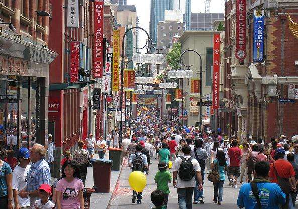 根据统计局数据,墨尔本市中心的38%人口(1.8万人)均有华人背景。留学潮改变了墨尔本中心的面貌,尤其是位于小柏克街(Little Bourke Street)的唐人街的规模,市中心的中国学生人口密集程度已达到较高水平。