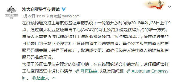 据澳大利亚驻华使领馆消息,2017年澳洲打工度假签证第三批申请将于2018年2月28日上午9点开放,请各位准备申请打工度假签证的朋友准备好材料,提前在线上等候。
