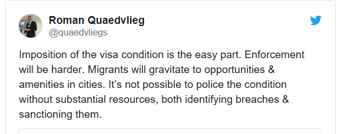 大城市的工作需求和边远地区的工作需求不一致。政府不可能一夜之间将移民从悉尼和墨尔本转移到边远地区。比如一位边远地区移民失去了工作但是在悉尼找到了一份更好的工作,那是不是就要放弃这个offer然后保持失业状态呢?
