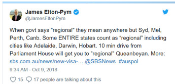 在2016/17财年,澳洲曾经接纳了4766名偏远地区技术移民,但是有一半去了珀斯,这直接导致随后政府将珀斯移除出边远地区清单。同样的问题可能再次发生,人们还是会留在达尔文,阿德,堪培拉以及霍巴特这些首府城市,广大边远地区依旧无法吸引移民。