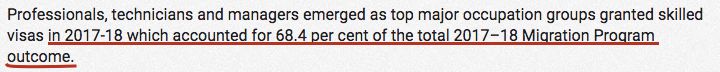 专业人员,技术人员和管理人员成为2017至18年度获得技术签证的主要职业类别,占2017 -18年永居签证数量的68.4%。