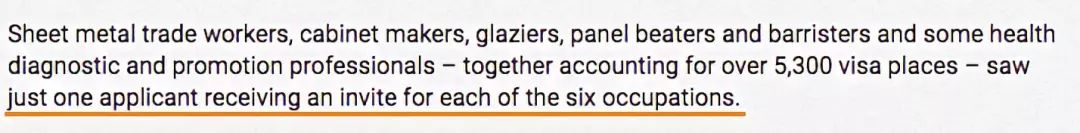 钣金贸易工人,橱柜制造商,玻璃工人,面板打手和大律师以及一些健康诊断和推广专业人员 - 共计超过5,300个签证名额。这六个职业种类中,每个种类分别只有一个申请人收到了邀请。
