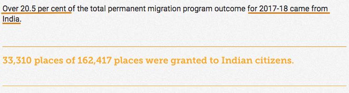 2017至18年,澳洲永久移民计划中,20.5%拿到签证的人均来自印度。