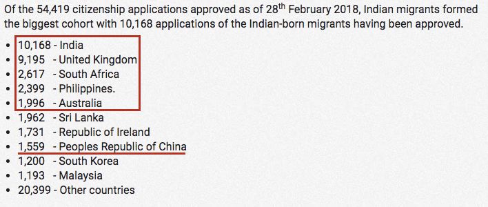 截至2018年2月28日批准的54,419份澳洲公民身份申请中,印度移民组成了最大的群组。