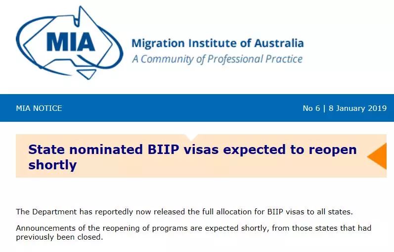 昨日,我们就收到澳大利亚移民协会发来的通知,表示已关闭提名的四州会很快恢复开放接受提名申请。