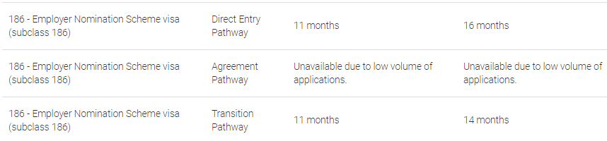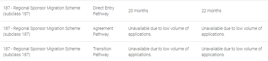 187签证Direct Entry 分支审理速度比上个月快1个月,75%的申请可以在20个月内审理完成,90%的申请可以在22个月内审理完成。而Transition 分支由于申请数量少,无审理进度数据!