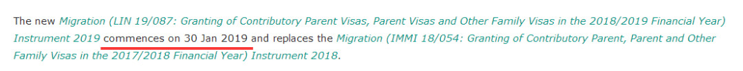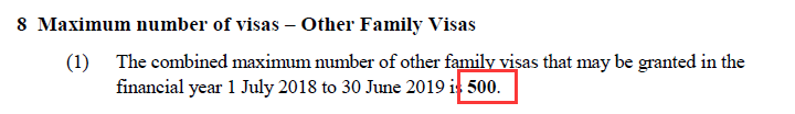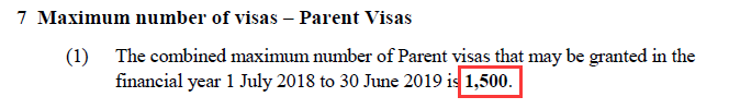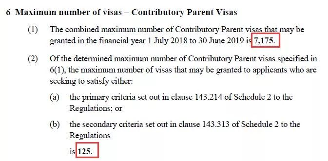 该法律文件主要罗列了2018/19财年三大类签证的配额上限,包括付费类父母签证、排队类父母签证和其它家庭类签证。